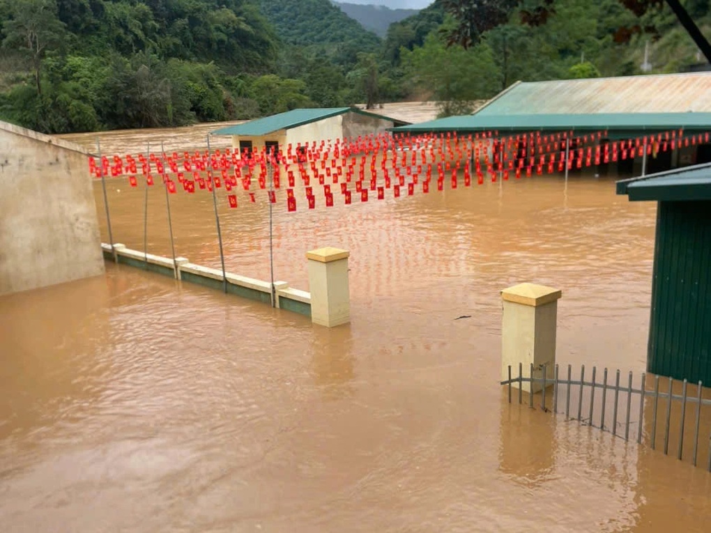 Không chỉ khu vực đồng bằng bị ảnh hưởng, các trường ở miền núi và vùng biên giới cũng chịu thiệt hại nặng nề. Trường Mầm non Mường Típ, nằm tại vùng biên giới huyện Kỳ Sơn, đã bị ngập sâu khi lũ từ thượng nguồn sông Nậm Mộ (Lào) bất ngờ đổ về ngày 29/9. Toàn bộ khuôn viên trường chìm trong nước, giáo viên chỉ kịp sơ tán đến vị trí cao để giữ an toàn. Thiết bị dạy học – phần lớn mới được hỗ trợ sau trận lũ vào tháng 7 – lại tiếp tục bị hư hỏng.